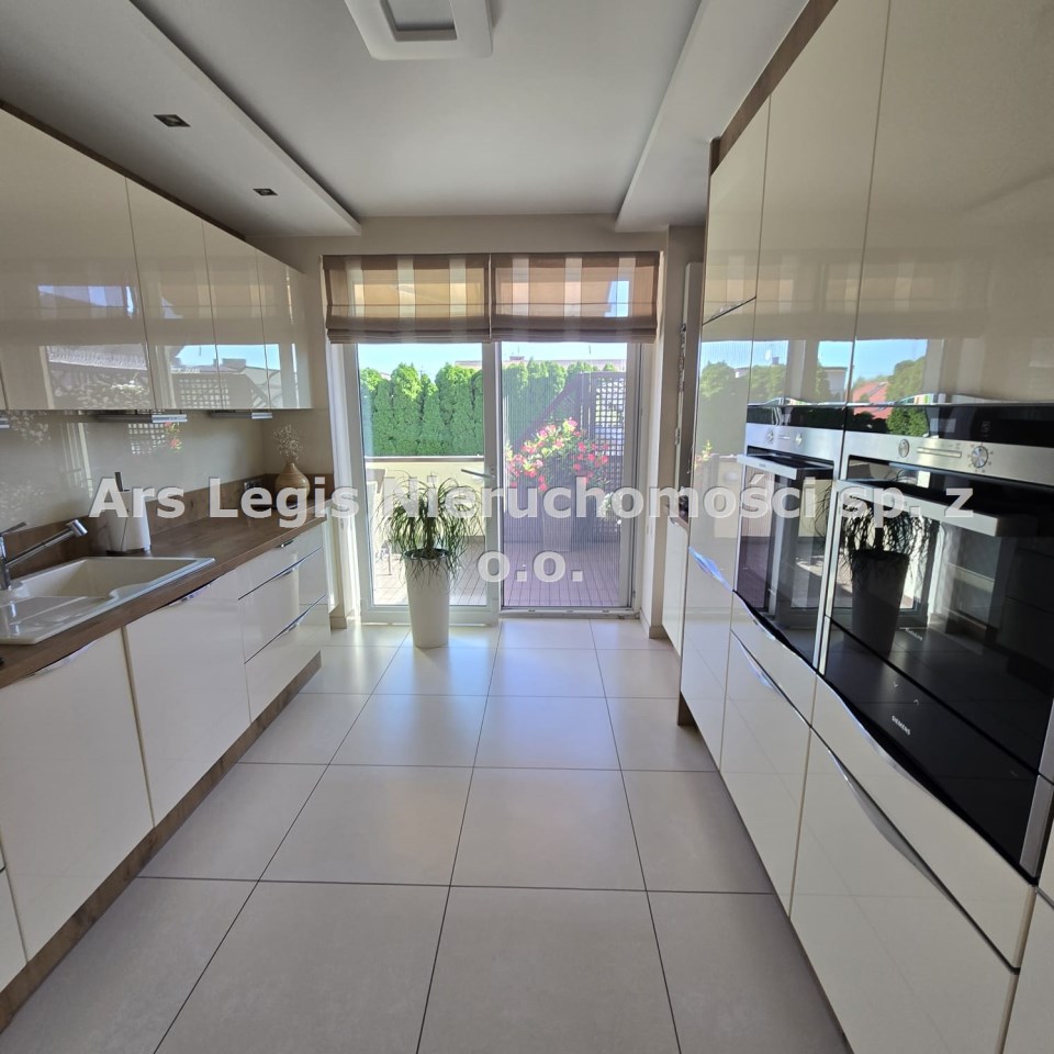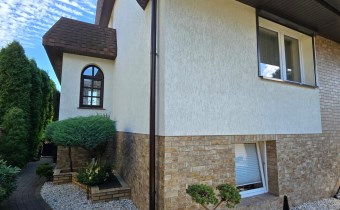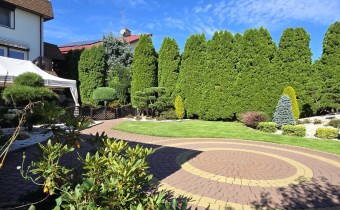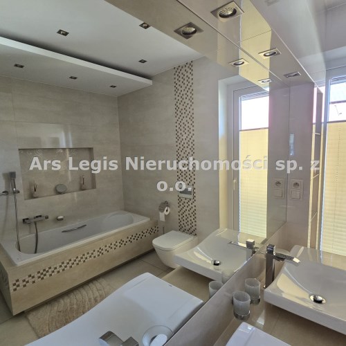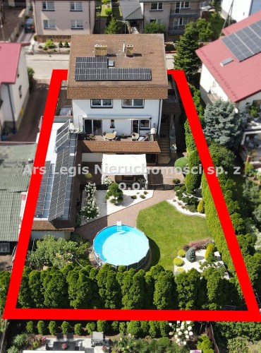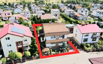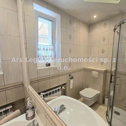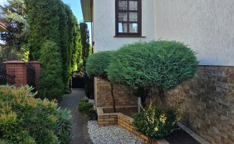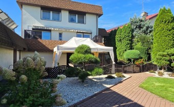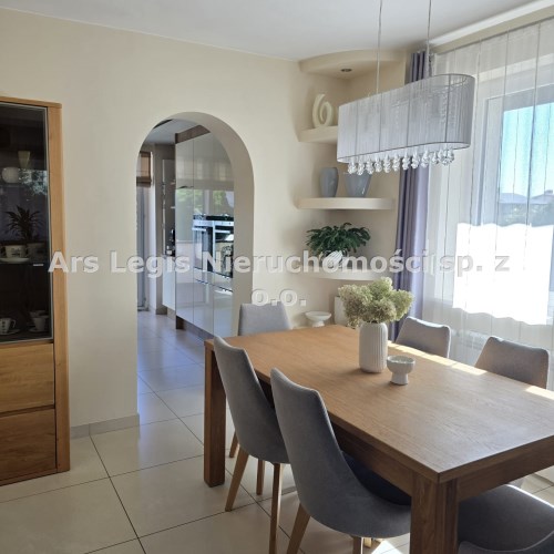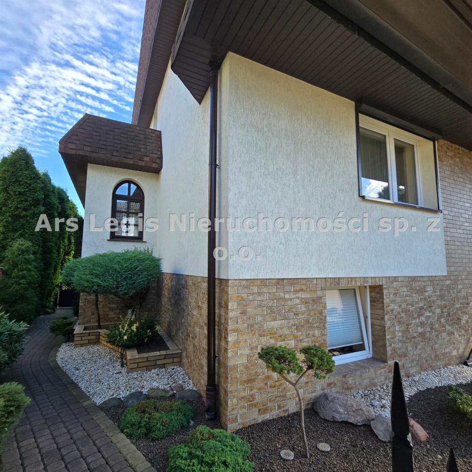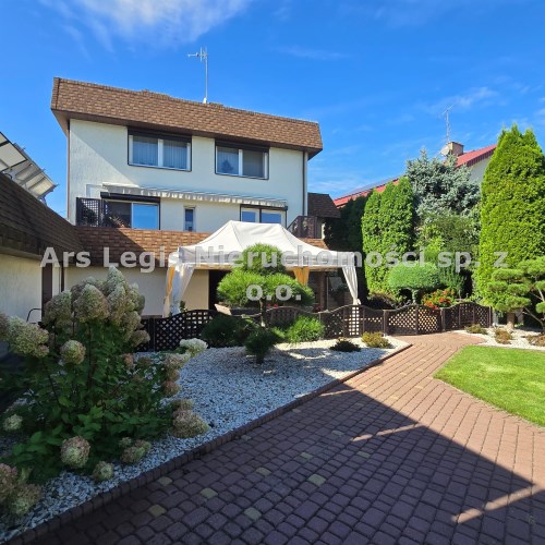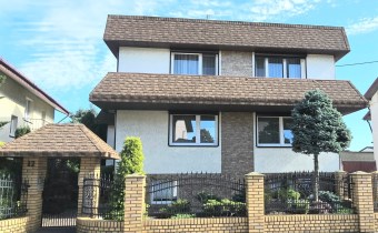 Dom dwukondygnacyjny z podpiwniczeniem pod całością budynku, wybudowany w 1993 roku. Dom niezwykle komfortowy i bardzo zadbany. Nie wymaga żadnych nakładów finansowych- gotowy do zamieszkania. Dom został podzielony na 3 strefy. W piwnicy znajdują się pomieszczenia techniczne typu kotłownia, pralnia, siłownia. Wysoki parter to część dzienna z bardzo dużym salonem, jadalnią i kuchnią Dodatkowo na parterze mieści się gabinet i łazienka. Piętro budynku to miejsce przeznaczone do wypoczynku domowników, znajdują się tutaj 4 sypialnie oraz duża łazienka.