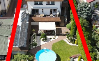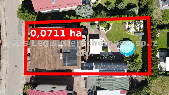 Dom posadowiony na działce o powierzchni 711 m2. Powierzchnia użytkowa domu to 200 m2. Na działce znajduje się również budynek gospodarczy z garażem na 2 auta o powierzchni 59 m2.