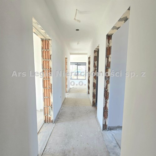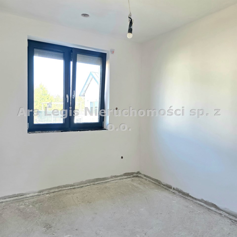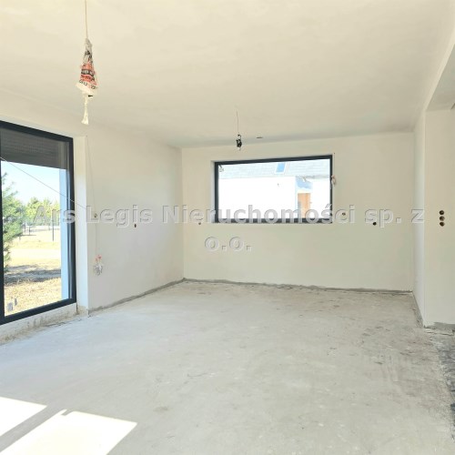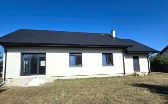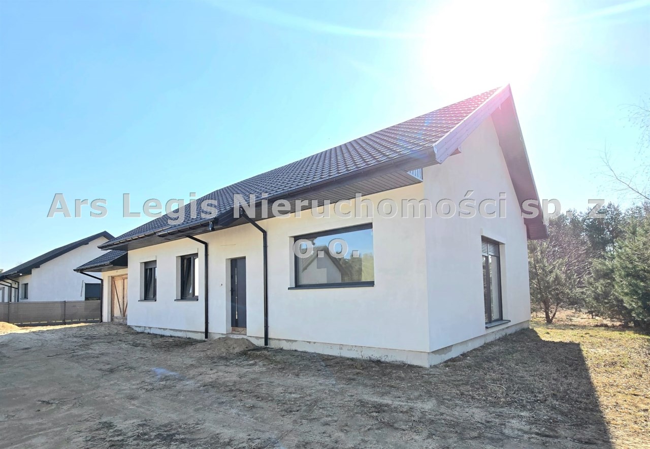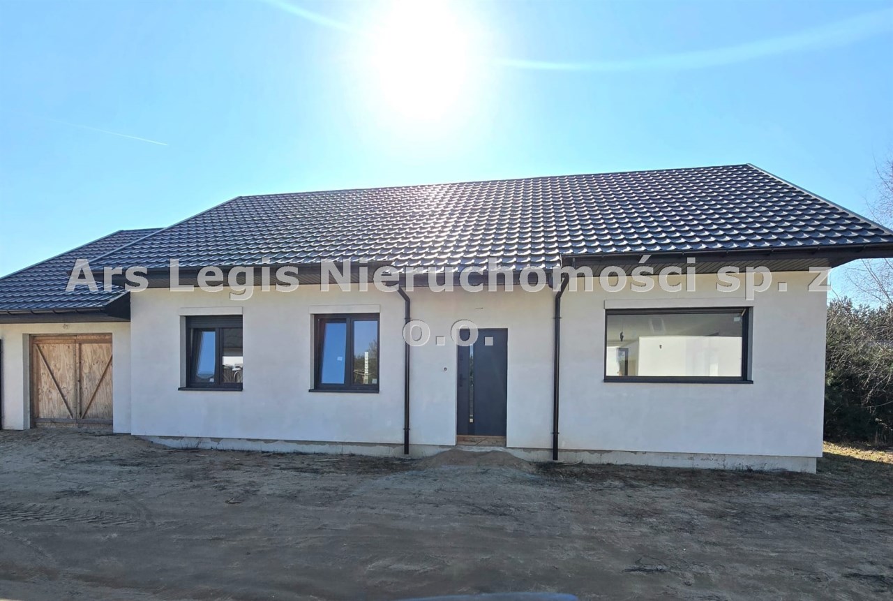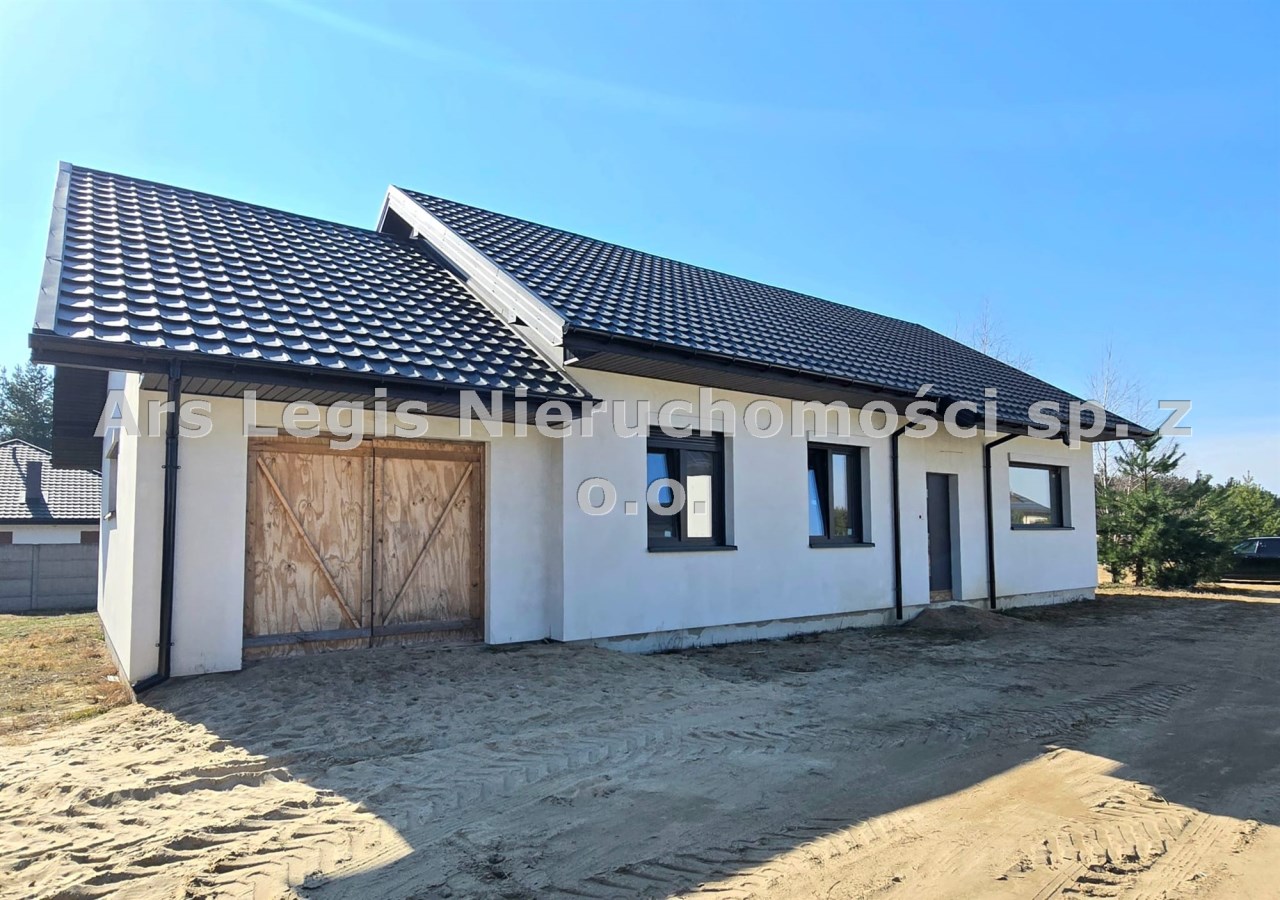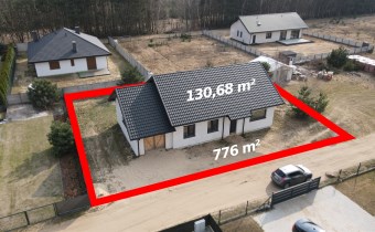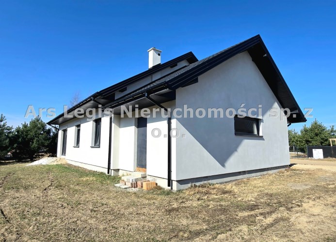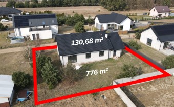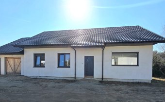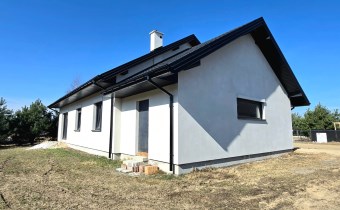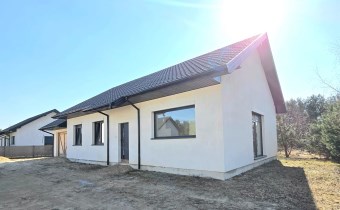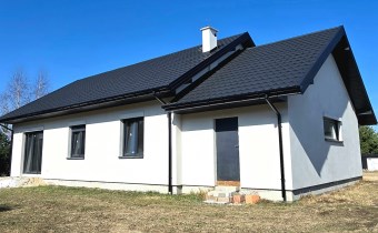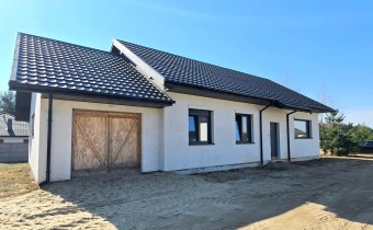 Dom parterowy, wolnostojący, niepodpiwniczony, z garażem w bryle budynku. Dom posiada salon z aneksem kuchennym, 3 pokoje (sypialnie), łazienkę, wc, kotłownię, hall oraz garaż. Łączna powierzchnia użytkowa 130,68㎡ (w tym mieszkalna 101,52㎡). Wewnątrz wykonano instalację elektryczną, doprowadzono wodę do budynku oraz rozprowadzona została instalacja kanalizacyjna. Ponadto wykonano w każdym pomieszczeniu wyprowadzenia do rekuperacji. Na ścianach położone zostały tynki gipsowe, a w łazience i WC tynki cementowo-wapienne. Dach wielospadowy pokryty blachodachówką w kolorze antracytowym. Okna PCV 3-szybowe z roletami w kolorystyce dachu. Ściany zewnętrzne ocieplone styropianem o grubości 20 cm. Brama garażowa w kolorze antracytowym zostanie zamontowana przed przeniesieniem własności i została wliczona w cenę ofertową. Na całości budynku strop żelbetowy.