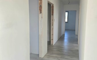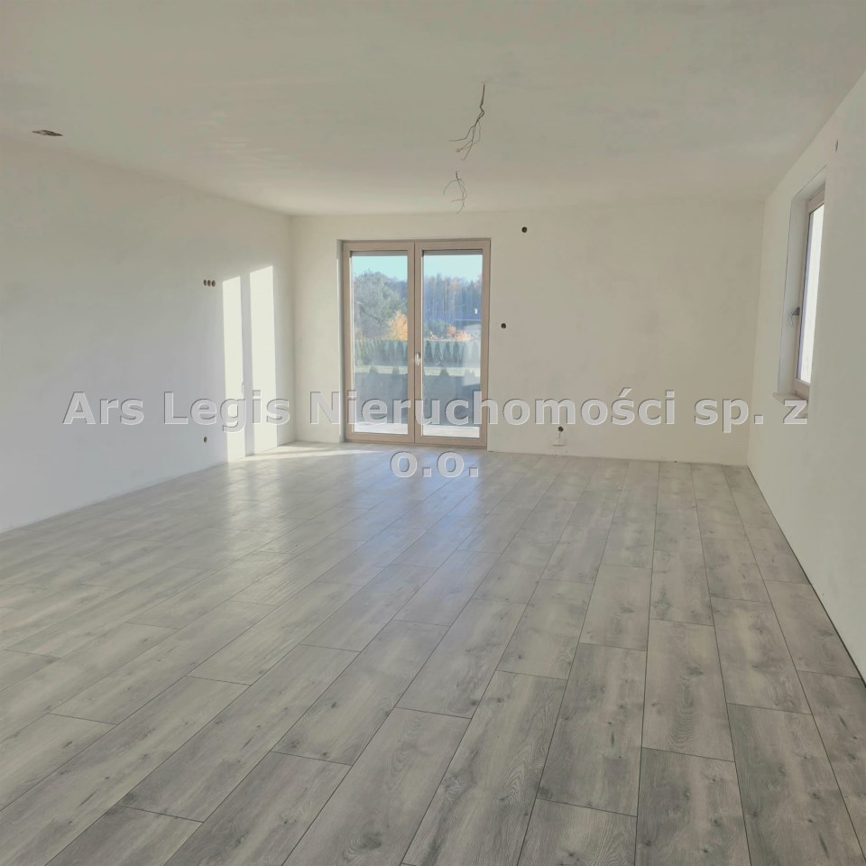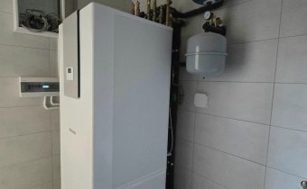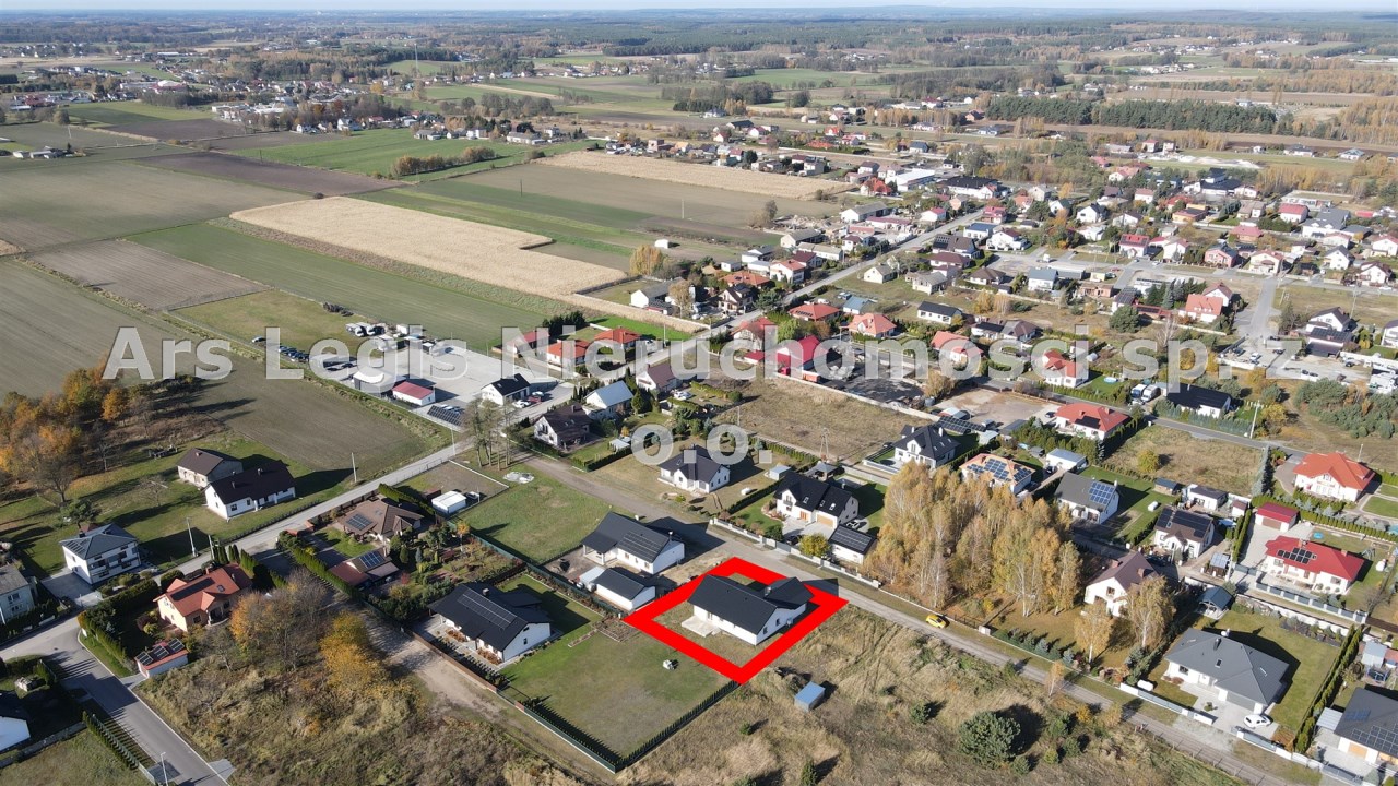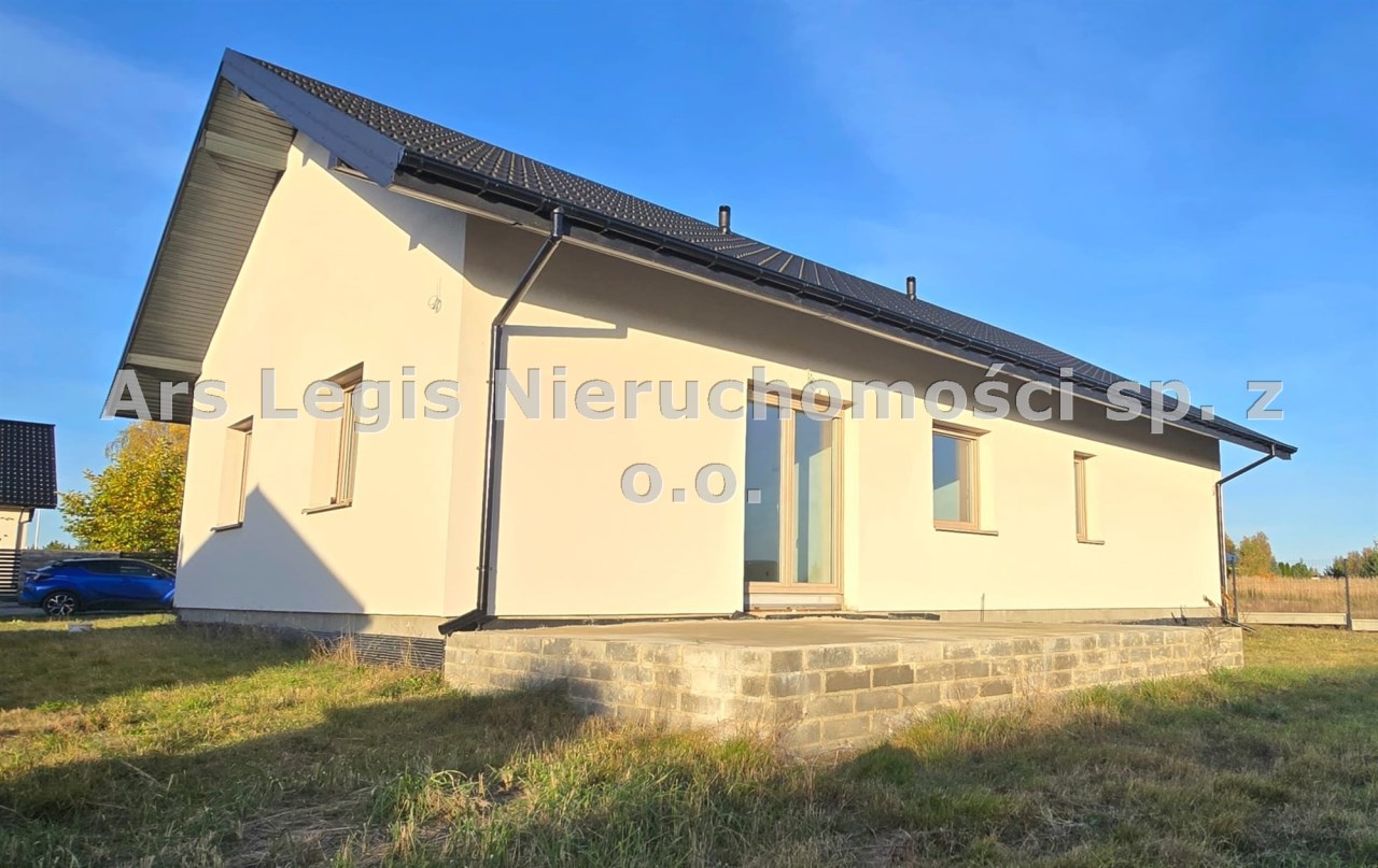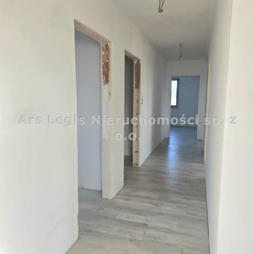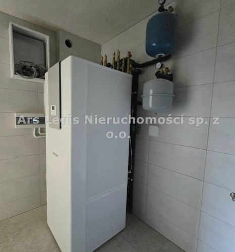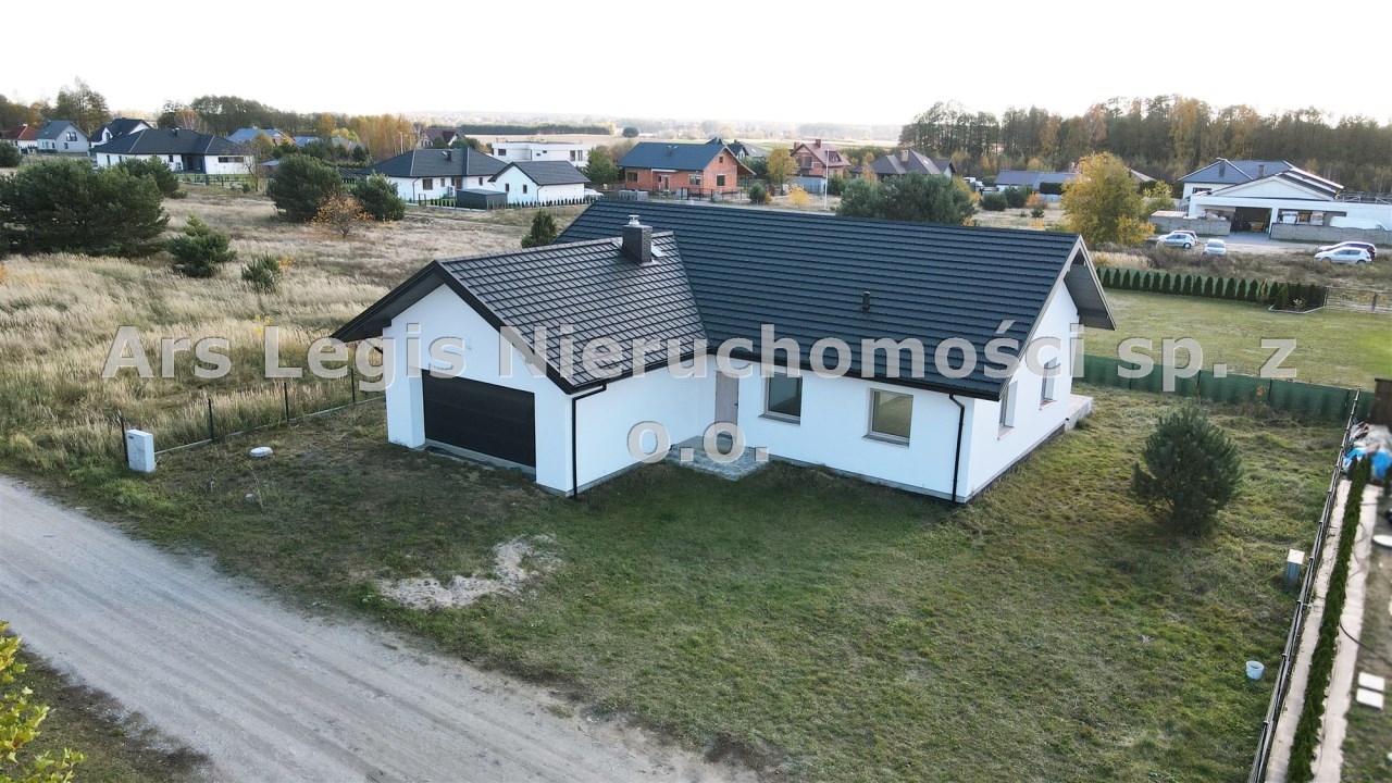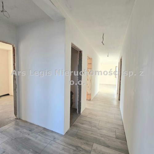 Wewnątrz wykonano instalacje: wodną, elektryczną, kanalizacyjną (szambo o pojemności 10m3). Zainstalowano instalację centralnego ogrzewania, w tym ogrzewanie podłogowe w całym domu, również w pomieszczeniach technicznych oraz garażu. Dom ogrzewany pompą ciepła firmy STIEBEL o mocy 8 kW. W całym domu wykonano tynki gipsowe, które zostały zagruntowane pod malowanie właściwe. W domu zostały wykonane posadzki anhydrytowe. Na podłogach położono w całym domu płytki ceramiczne. Wykończone w pełni pomieszczenie kotłowni. W pokojach zamontowano parapety wewnętrzne z konglomeratu w kolorystyce okien. Do pełnego wykończenia budynku brakuje bardzo niewiele, przede wszystkim wykończenia łazienki i wc oraz zamontowania drzwi wewnętrznych. Na całym budynku wykonano strop żelbetowy, który został ocieplony styropianem o grubości 25 cm, a na nim wylano wylewkę. W ten sposób uzyskano dodatkową powierzchnie do przechowywania lub dodatkowej aranżacji wg indywidualnych potrzeb użytkowników. Właściciele uzyskali zgodę na montaż instalacji fotowoltaicznej o mocy 8 kW, w ramach projektu OZE realizowanego przez samorząd, która będzie zrealizowana w terminie do 31.03.2026 roku.