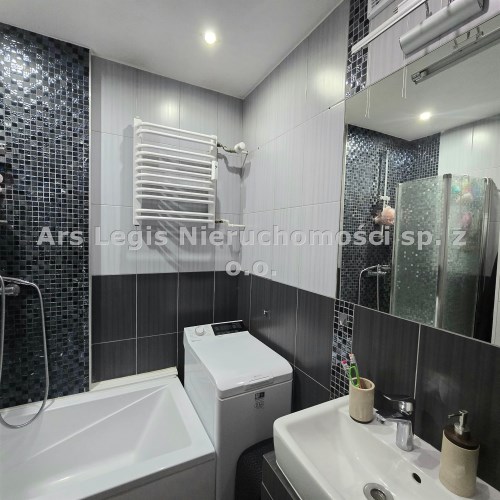 Mieszkanie w pełni rozkładowe, składa się z 2 pokoi, kuchni, łazienki, osobnego WC oraz przedpokoju. Do lokalu przynależy piwnica. Mieszkanie zostało przearanżowane na 3 pokoje i aneks kuchenny, tym samym mieszkanie zyskało osobną sypialnie. Wyjście z salonu na duży balkon od strony wschodniej. Mieszkanie jest jasne, przestronne i zadbane. Ściany wygipsowane, na podłogach panele i terakota. W przedpokoju mieści się duża, pojemna szafa na wymiar. Okna PCV z roletami zewnętrznymi (wystawa zachodnia). Drzwi wejściowe antywłamaniwe. Wejście do klatki zabezpieczone domofonem. Blok po termomodernizacji.